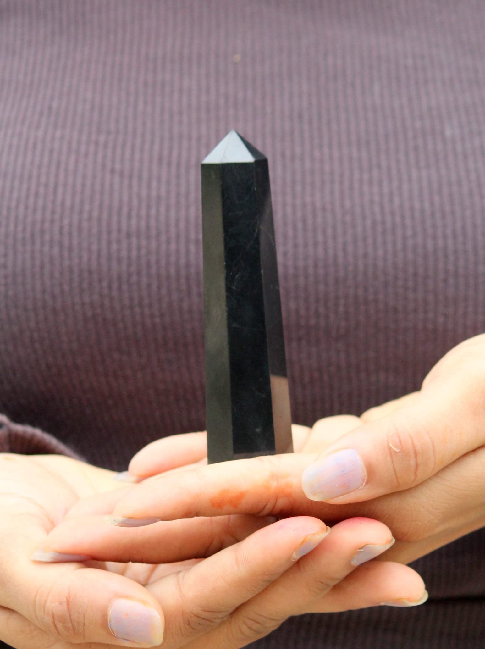 Jet Authentic Energized Shungite Obelisk Approx 70-80 Grams And 3.5 – 4 Inch Long Cleansed Charged Agate Authentic Gemstone Genuine