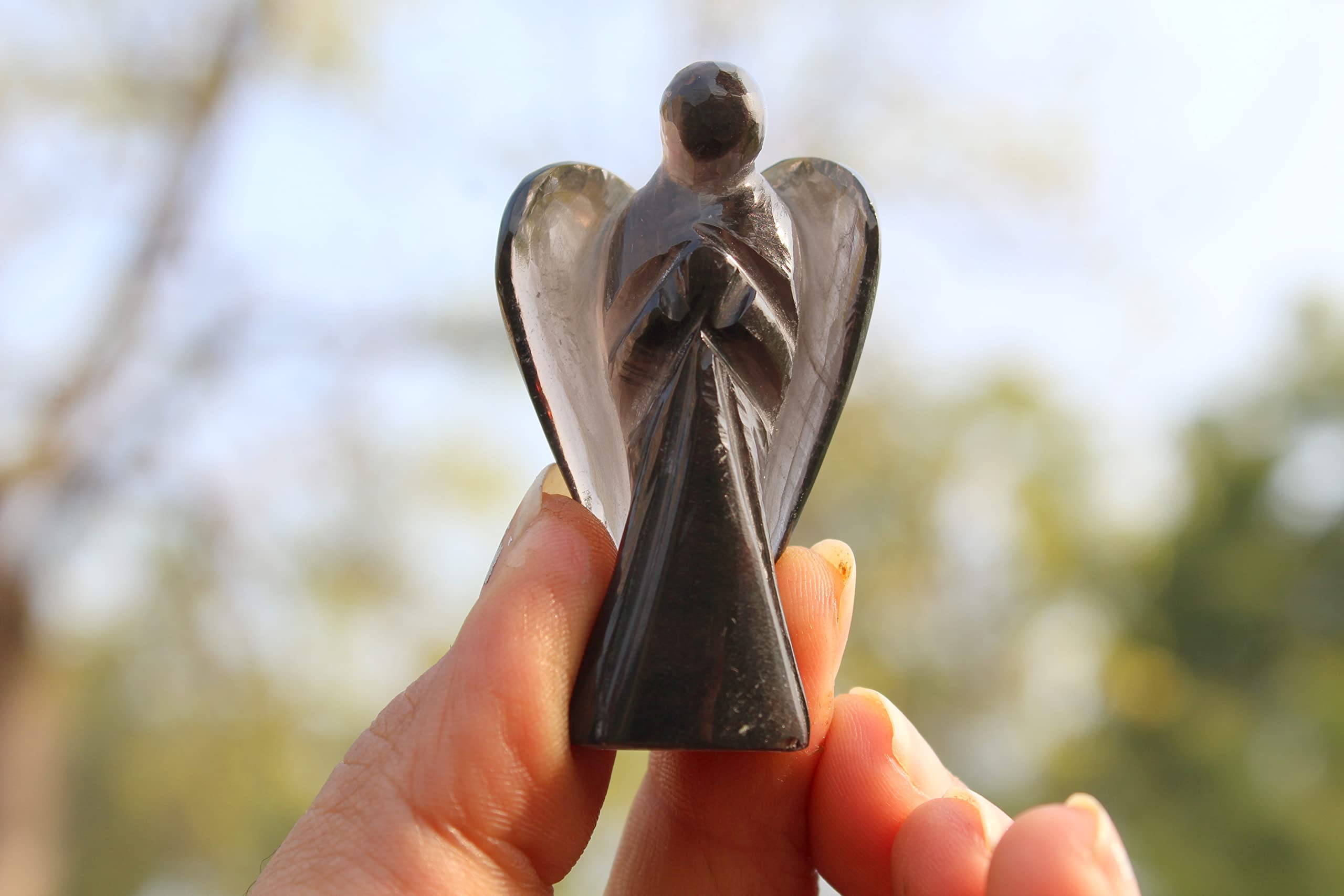 BuySmokey Quartz Gemstone Angel | 2-inch | Carved Pocket Crystal Guardian Angel | Natural Crystal Angel