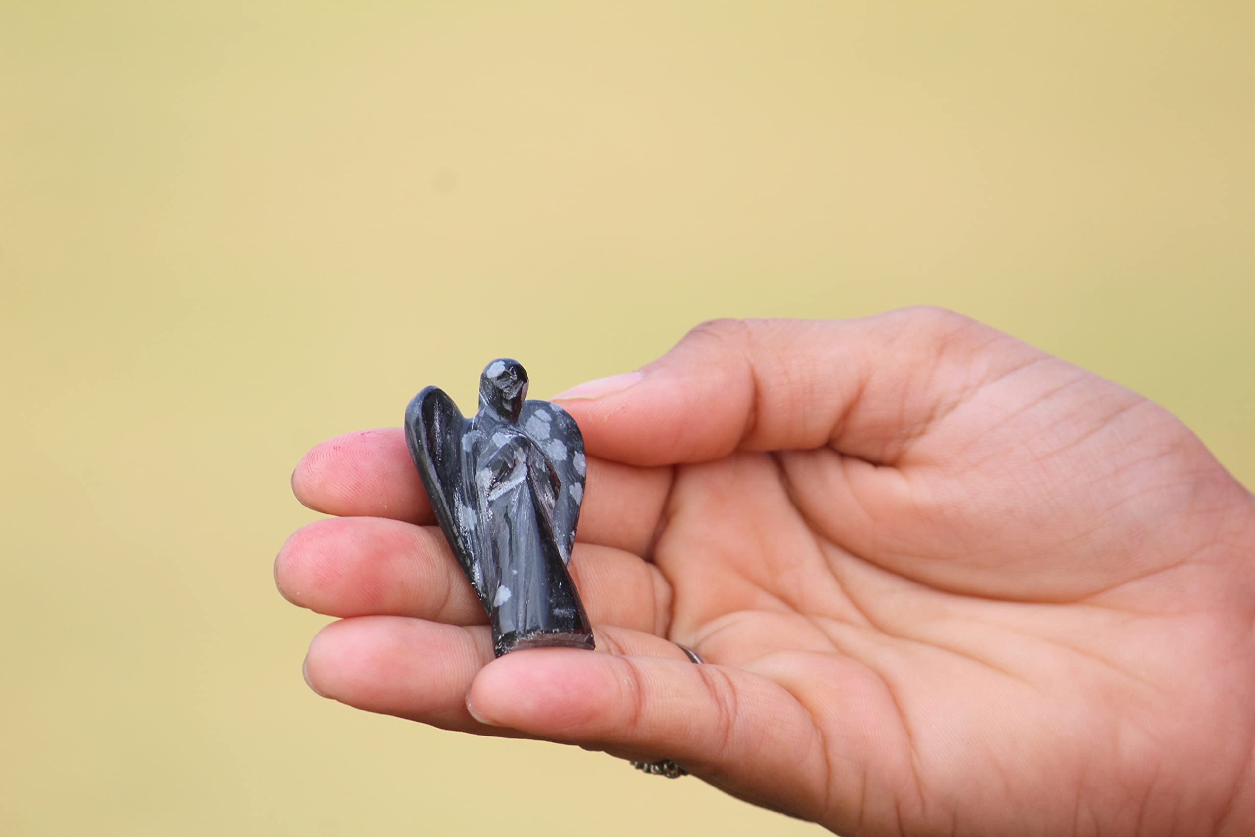 BuySnowflake obsidian Angel | Pocket Crystal Guardian Angel | Natural Crystal Angel | Home Office Decor