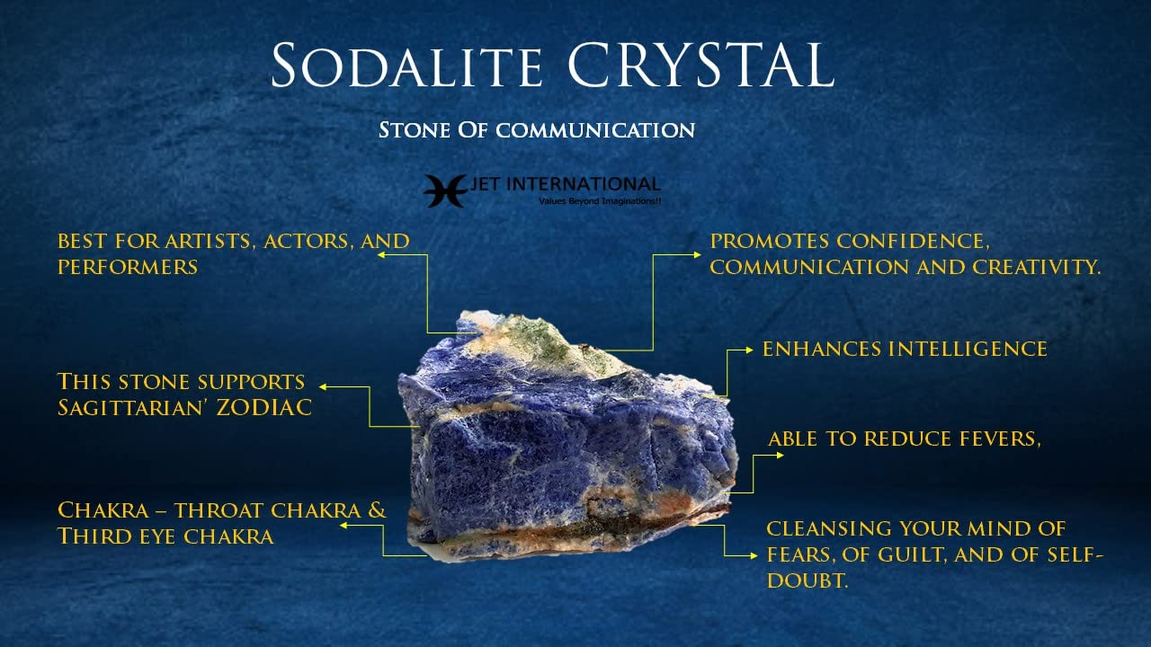 Sodalite calms the mind, brings clarity of thought, boosts self-esteem, increases intuition powers and encourages verbalisation of feelings. It also helps in balancing the metabolism, boosting the immune system and recovering from digestive disorders.