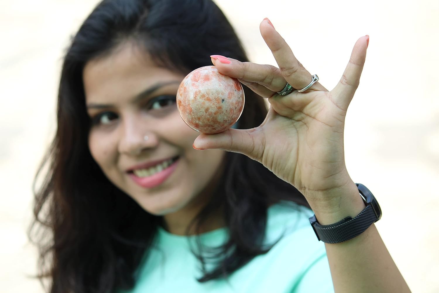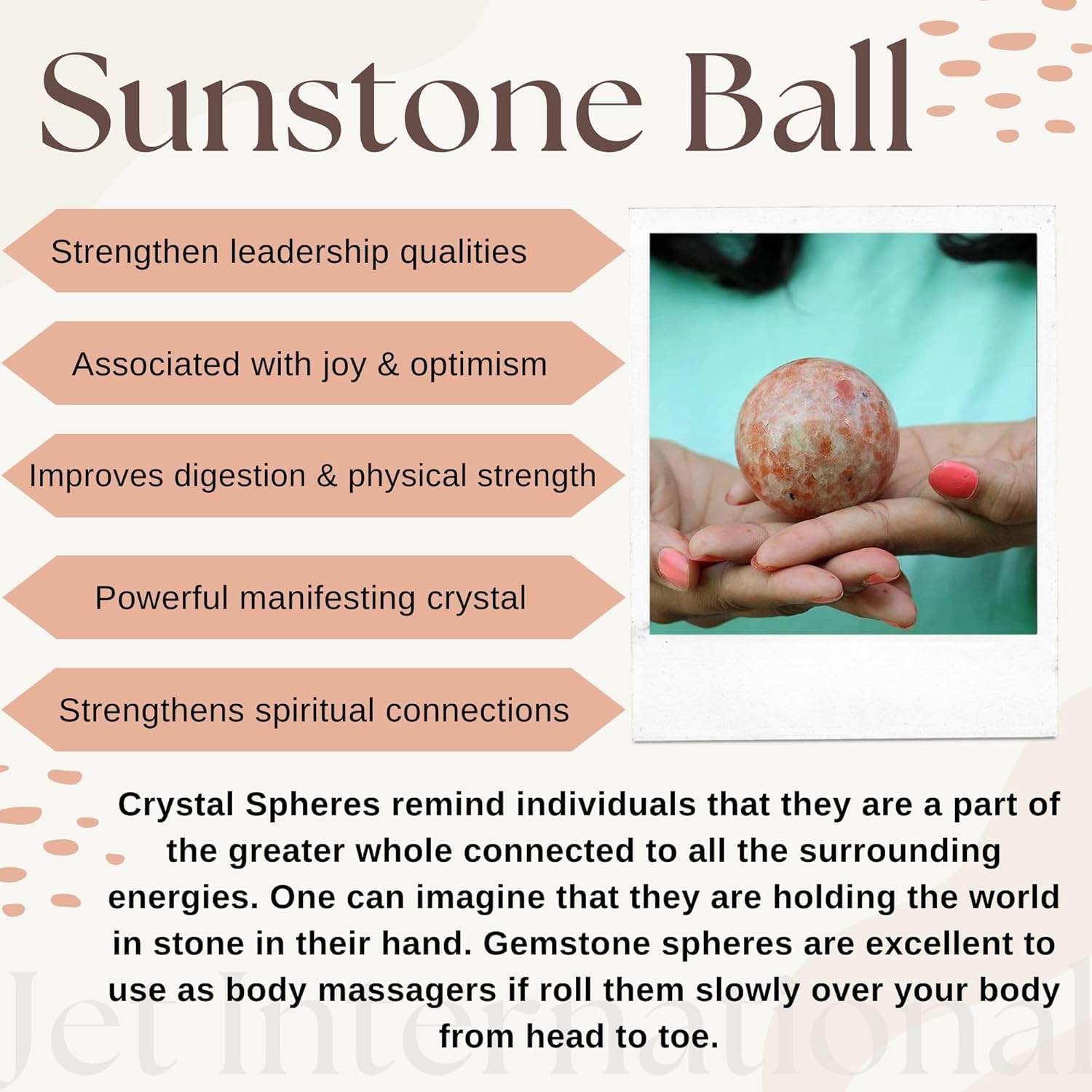 Natural Sunstone Sphere (50-55 mm): Handcrafted from 100% authentic sunstone, this crystal ball carries vibrant energy, making it perfect for meditation, reiki, and chakra healing practices.