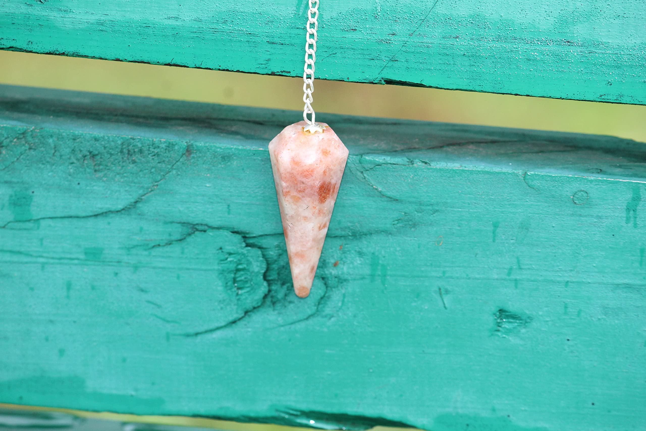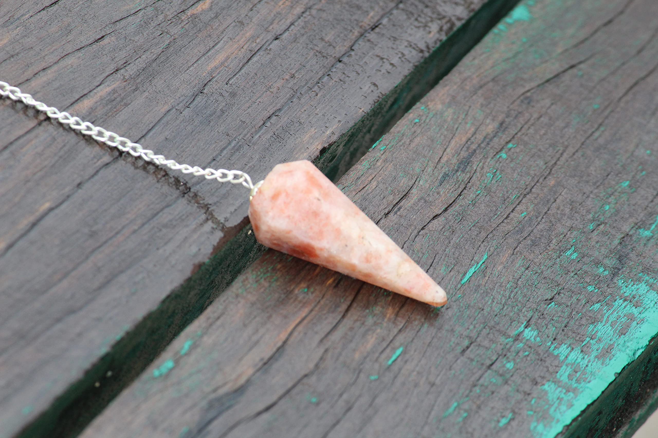 Beautiful Sunstone Cone Shaped Faceted Pendulum. Kindly note that since all our products are handcrafted and carved there always exist slight deviation in size, shape, color, looks compared to the image shown here. However the Healing Qualities and Metaphysical Properties are EXCELLENT.
