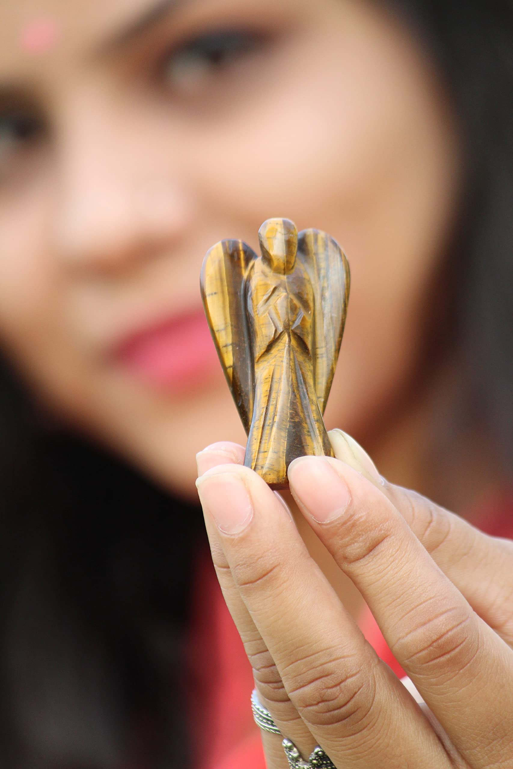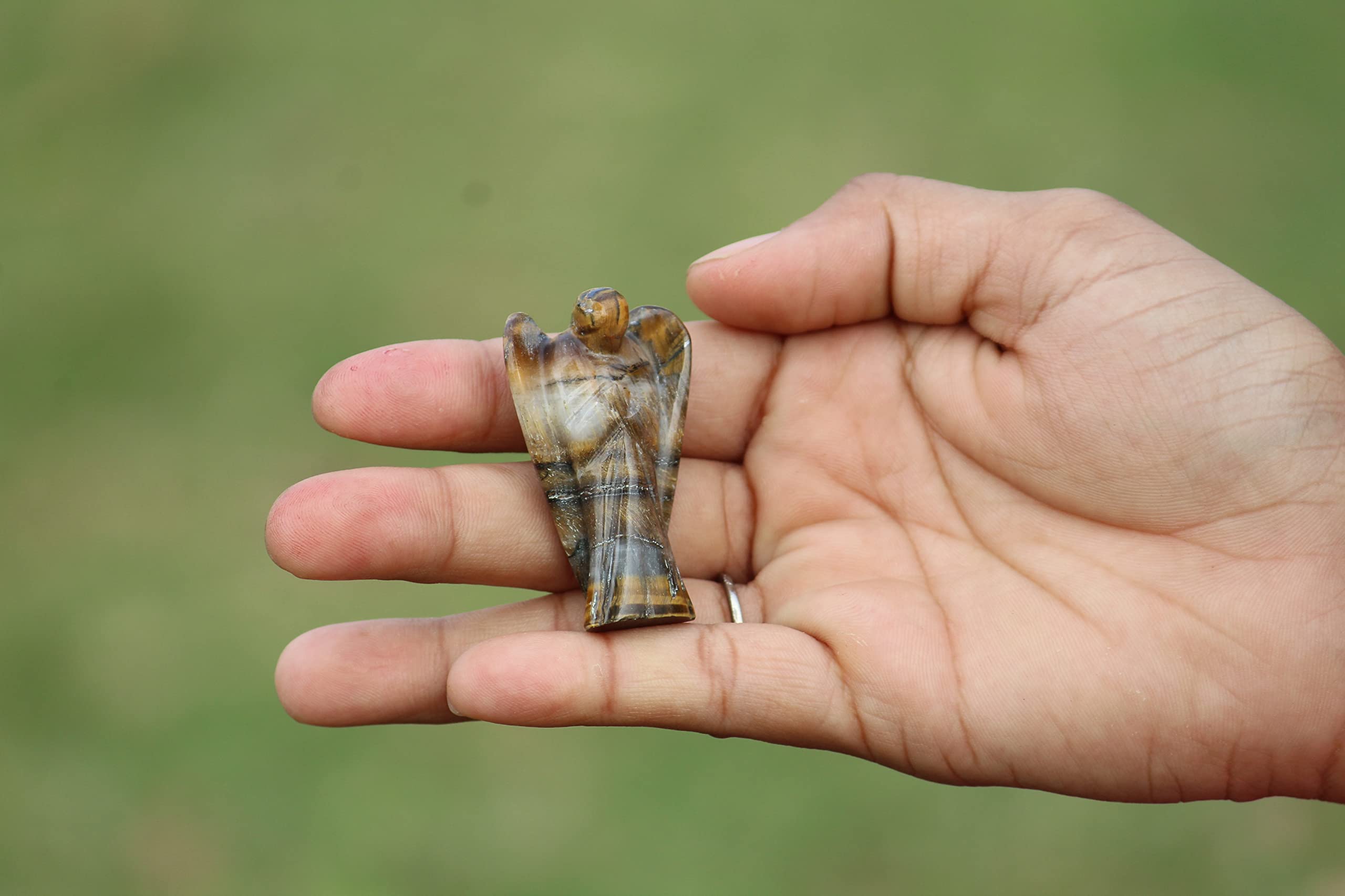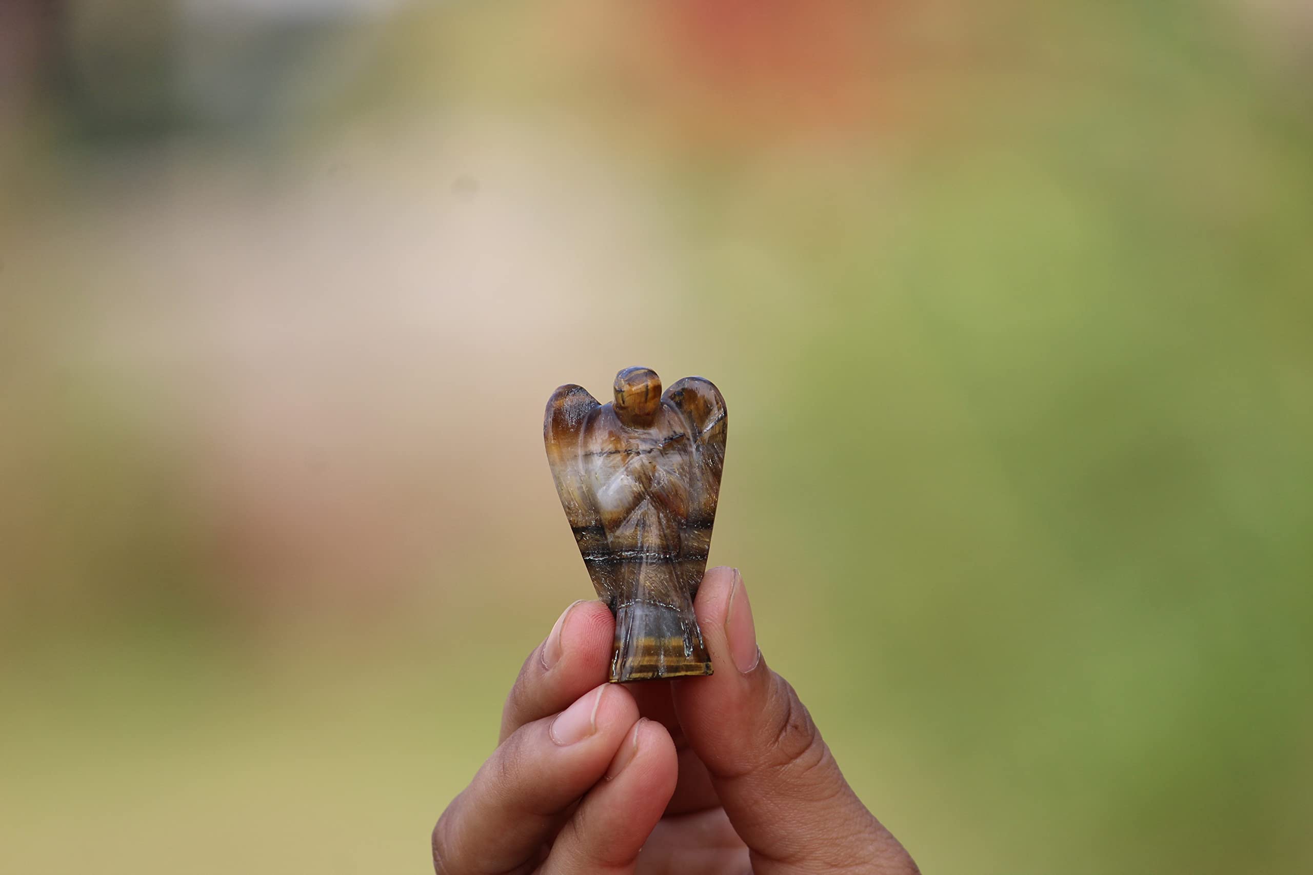 BuyTiger Eye Gemstone Angel | 2-inch | Protection Energy | Carved Pocket Crystal Guardian Angel | Home Office Decor