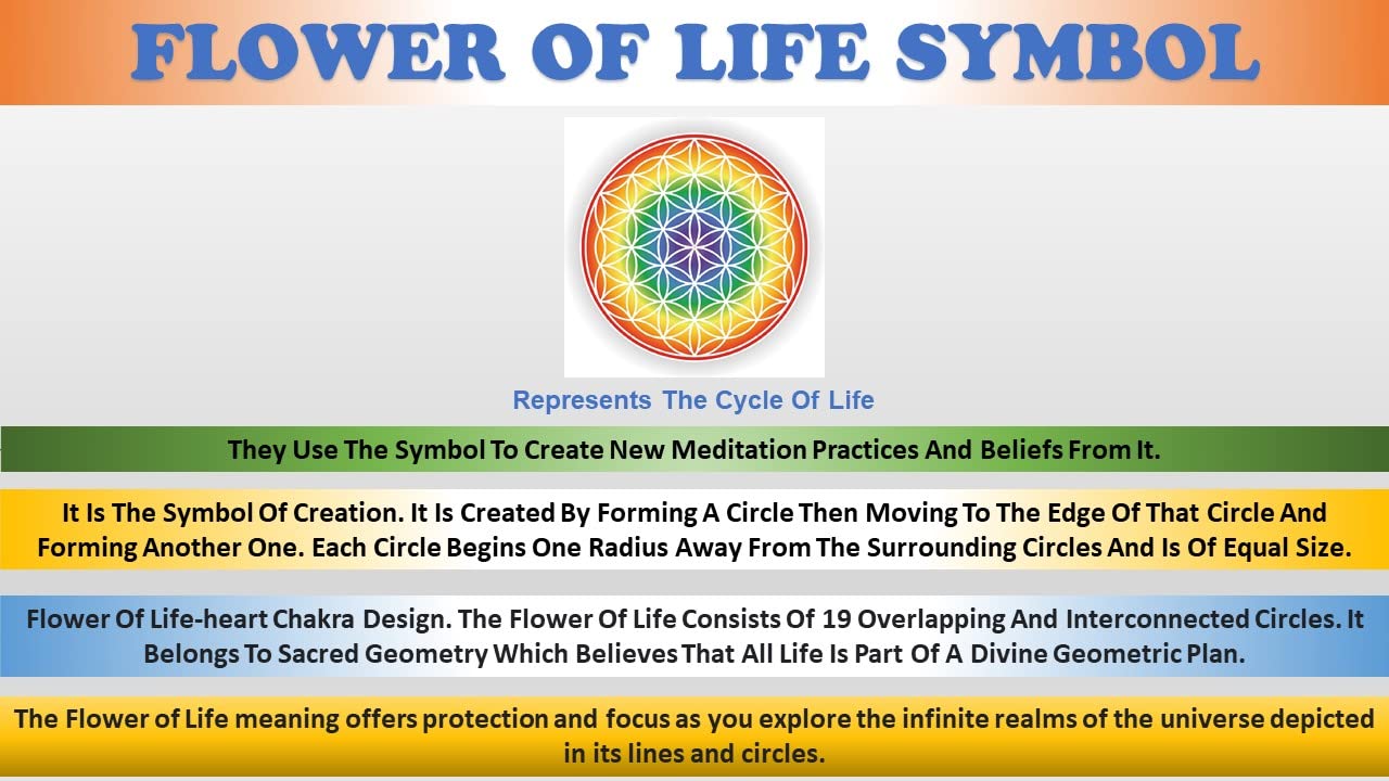 It Is The Symbol Of Creation. It Is Created By Forming A Circle Then Moving To The Edge Of That Circle And Forming Another One. Each Circle Begins One Radius Away From The Surrounding Circles And Is Of Equal Size.