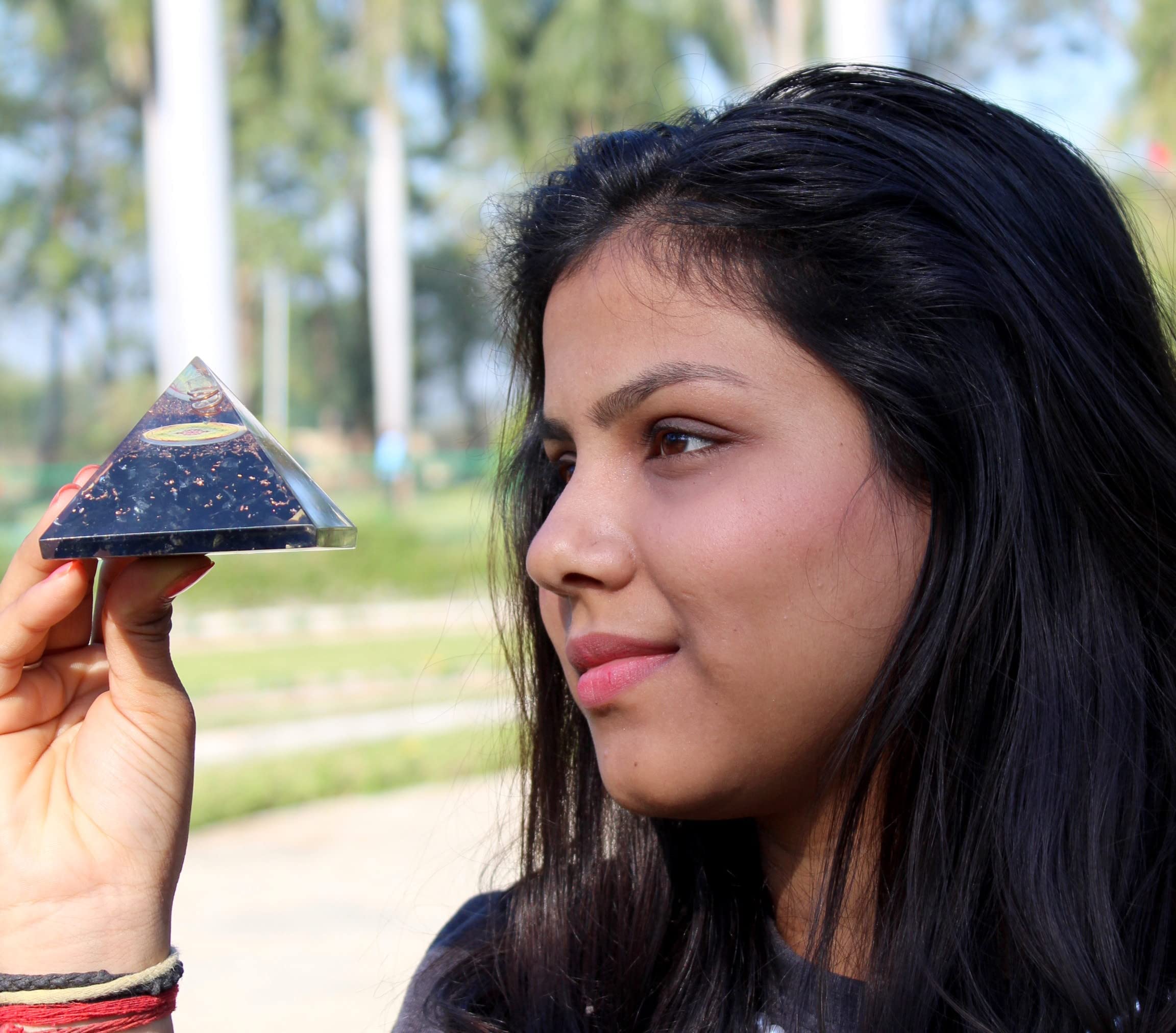 Jet Tourmaline Fol Orgone Pyramid Lucky Ions Generator 2.5 inch Copper Coil. This is a wonderful piece of art giving lots of Strength, Power, Mental Peace to whosoever wears it. Kindly note that since all our products are handcrafted and carved there exists slight deviation in size, shape, color, looks compared to the image shown here; however the Healing Qualities & Metaphysical Properties are EXCELLENT. Image is just a reference. Best for Peace, Power, Prosperity.