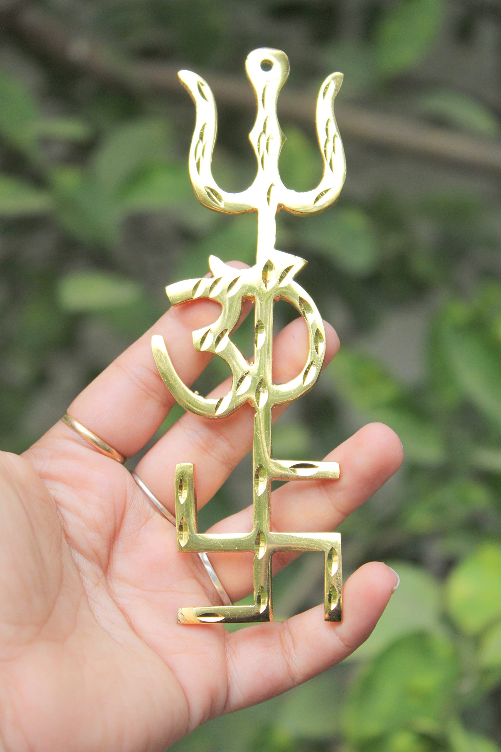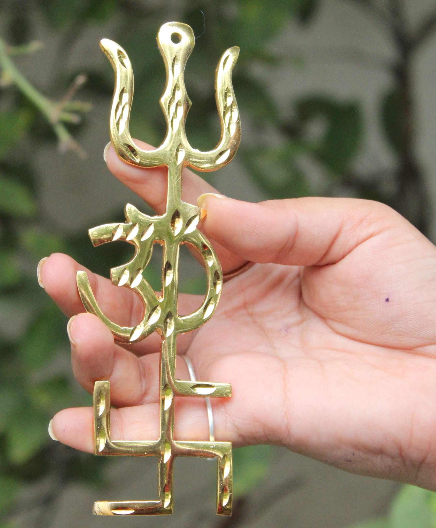 This trisakthi acts as a decorative piece and can be hanged over wall, door, window, pooja-ghar, car, etc. You can also use it as a unique gift for any occasion.