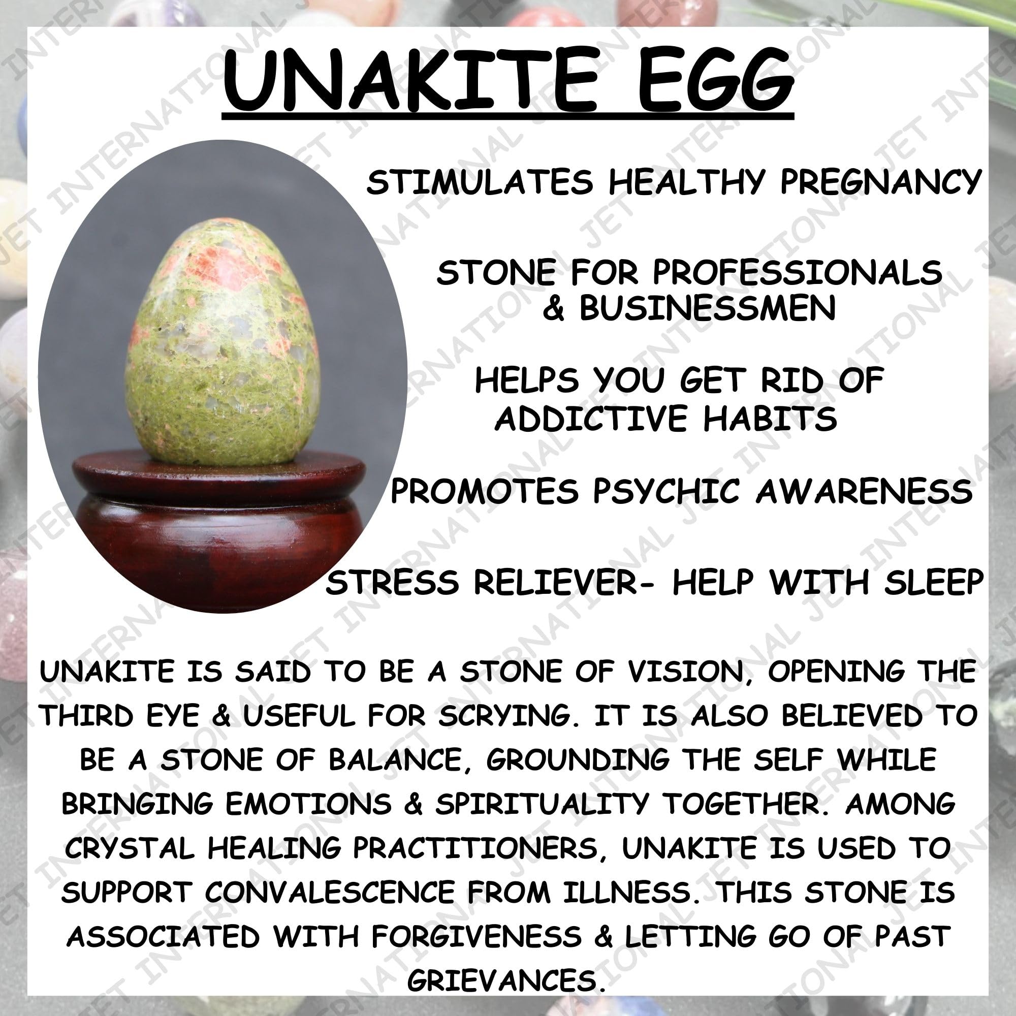 Premium Natural Stone: Handcrafted Unakite crystal egg made from genuine gemstone with beautiful green and pink tones.