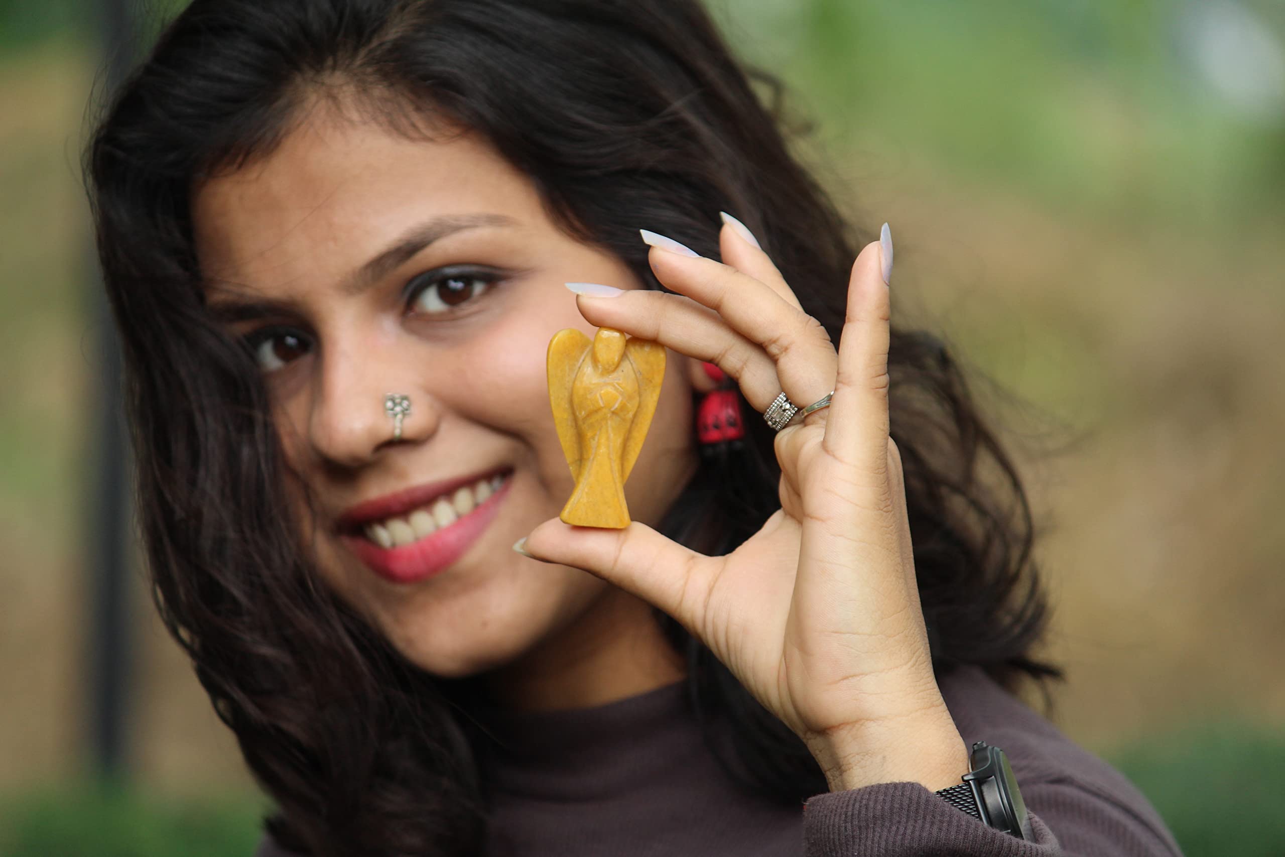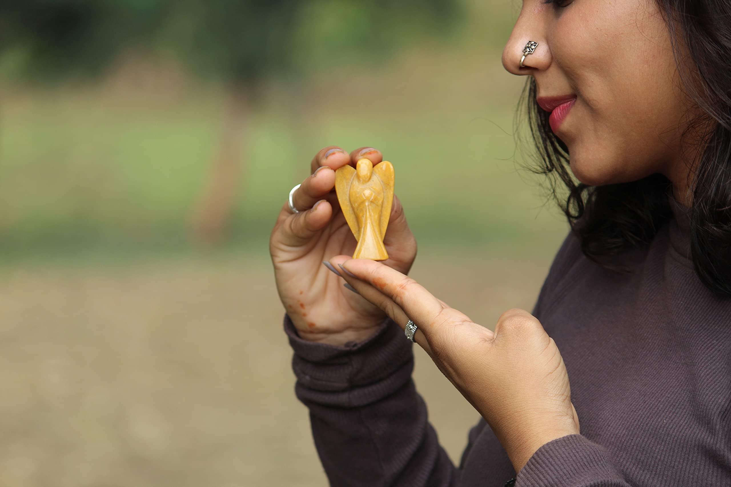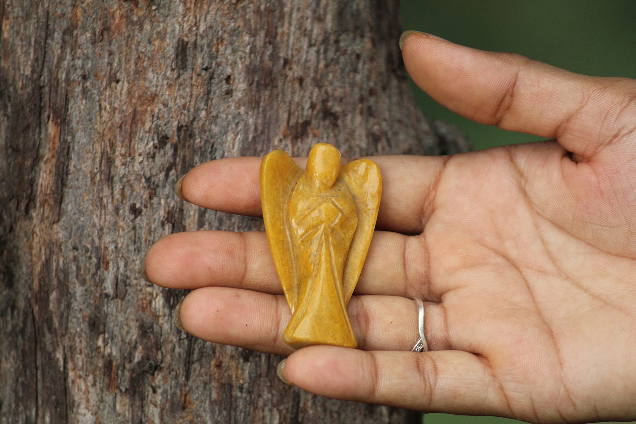 BuyYellow Jade Gemstone Angel | 2-inch | Carved Pocket Crystal Guardian Angel | Natural Crystal Angel | Home Decor