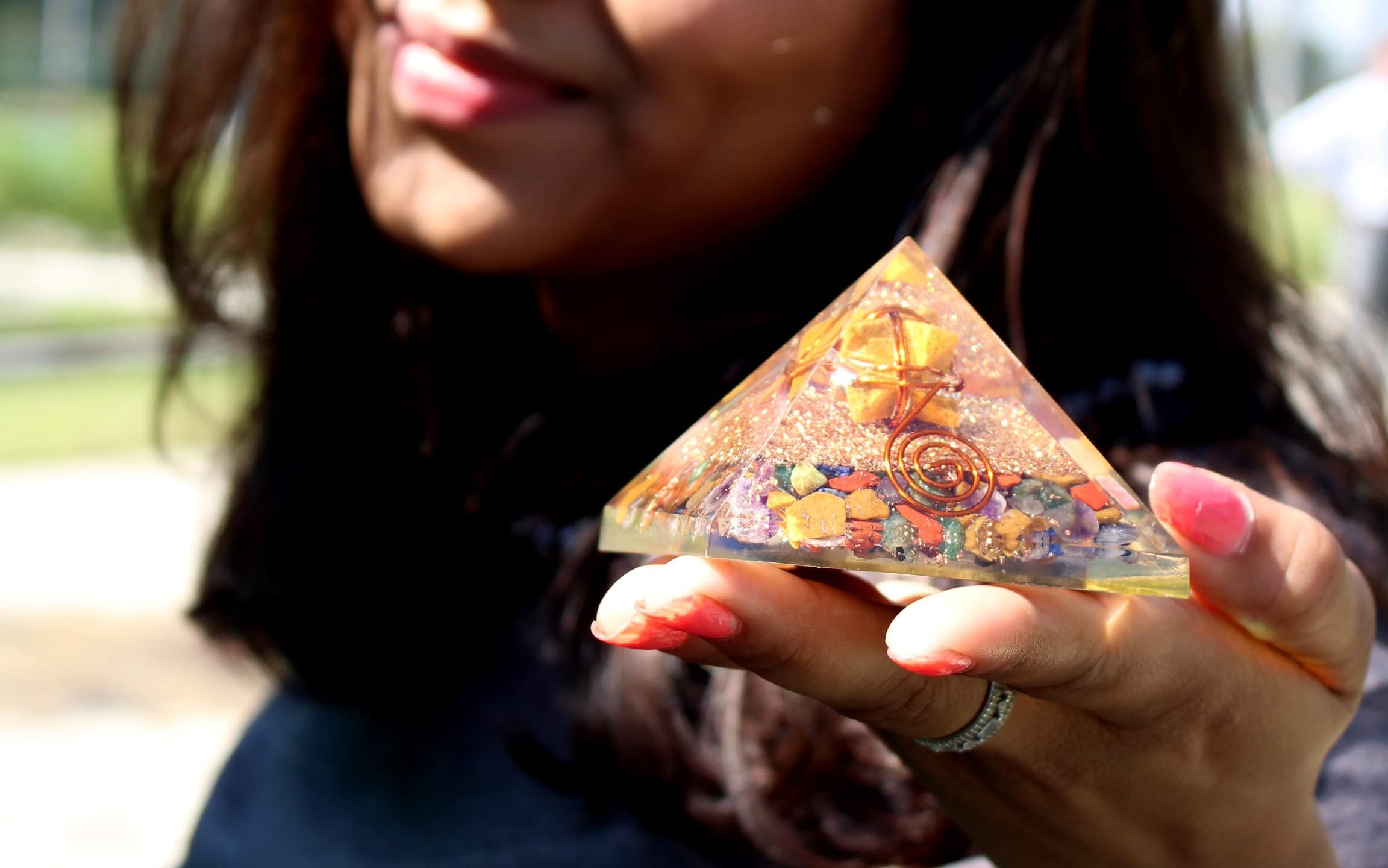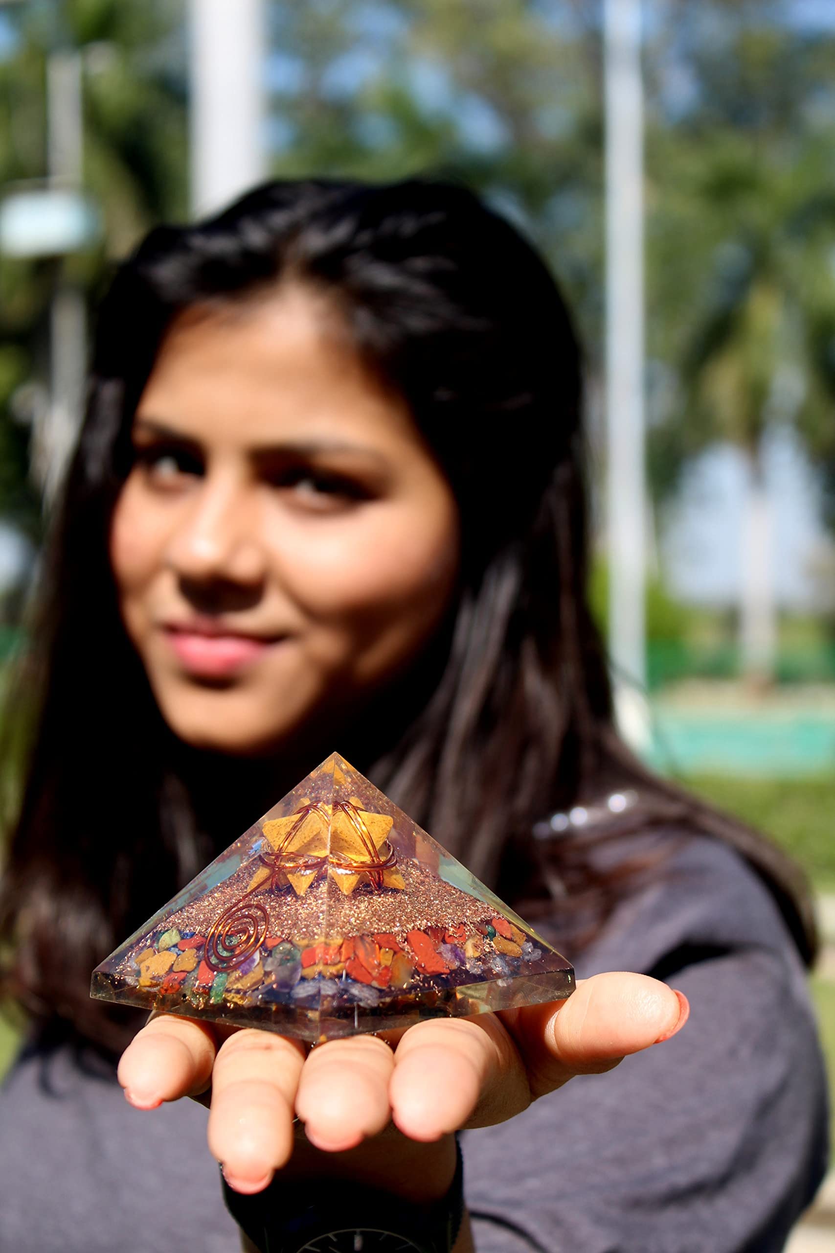 Jet Mix Gemstone Yellow Jade Merkaba Chakra Orgone Pyramid Lucky Ions Generator 2.5 inch Copper Coil. This is a wonderful piece of art giving lots of Strength, Power, Mental Peace to whosoever wears it. Kindly note that since all our products are handcrafted and carved there exists slight deviation in size, shape, color, looks compared to the image shown here; however the Healing Qualities & Metaphysical Properties are EXCELLENT. Image is just a reference. Best for Peace, Power, Prosperity.