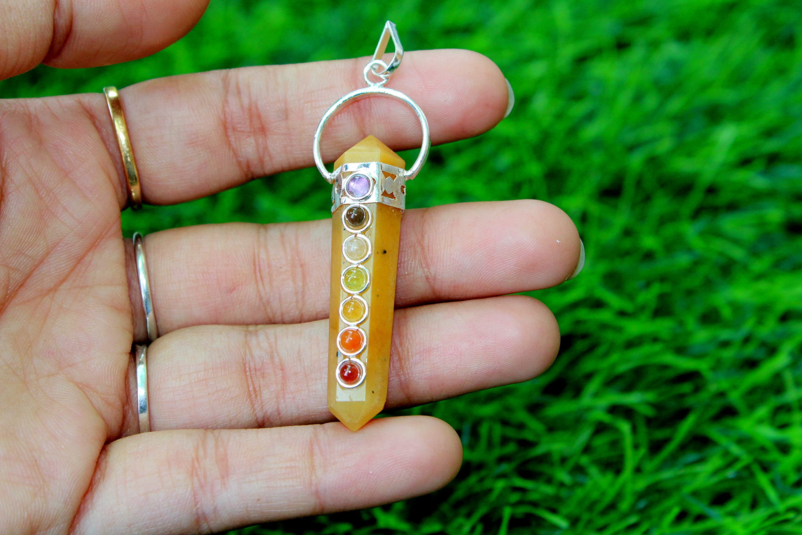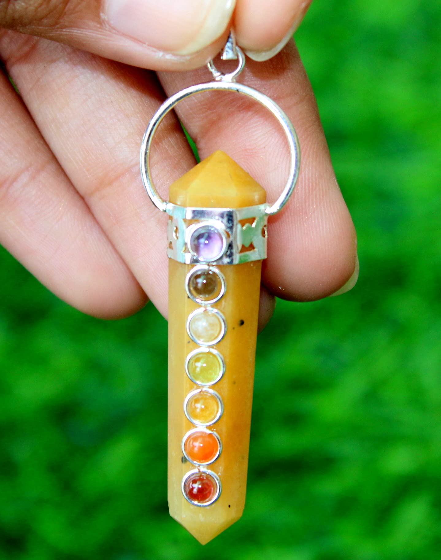 BuyYellow Jasper Double Point Chakra Terminated Point Pendant | Healing | Crystal Therapy | Dowsing Pendant