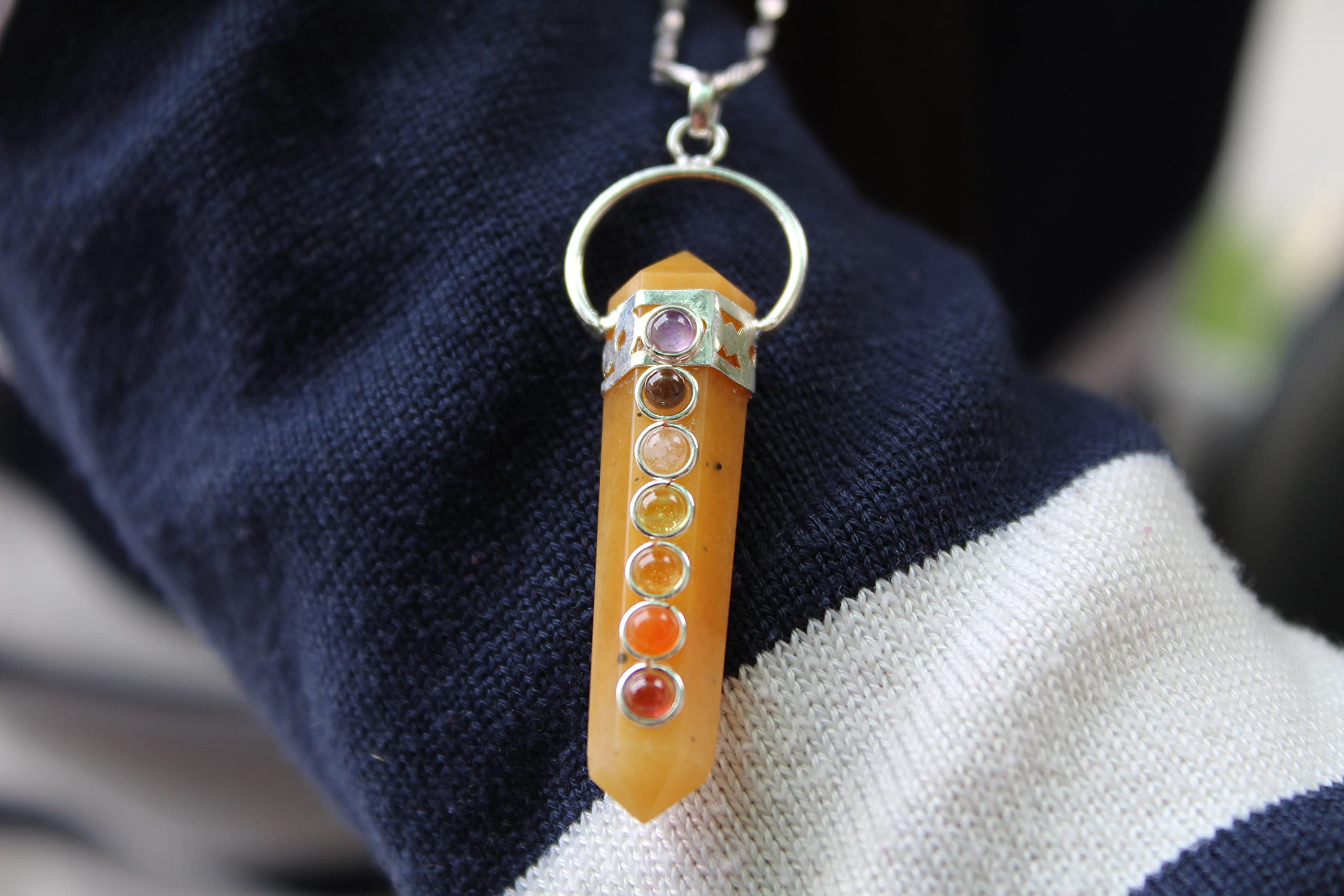 Authentic Crystal Quartz Chakra Wand Pendant | Gemstone Healing | Natural crystal | Chakra Wand Pendant